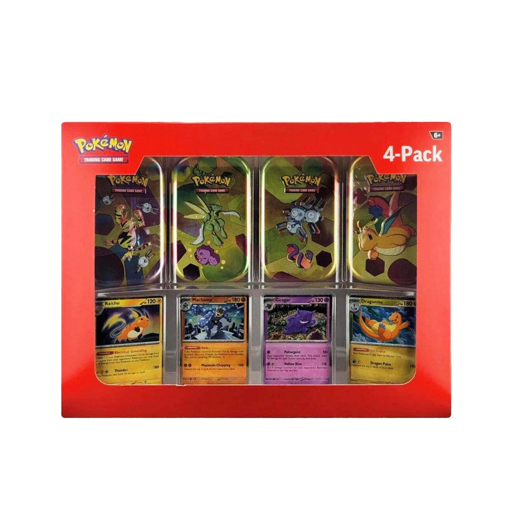 In each Pokémon TCG: Scarlet & Violet-151 Mini Tin, you’ll find: 2 Pokémon TCG: Scarlet & Violet-151 booster packs 1 cool coin featuring an Energy symbol A Pokémon art card showing the art from this Mini Tin-you can collect and combine all 10!