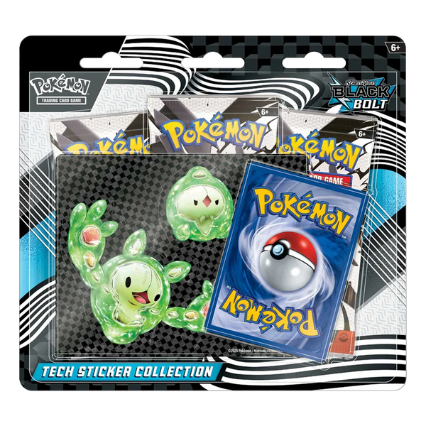 Would you shake hands with the Multiplying Pokémon? Team up with Reuniclus as a foil promo card that can evolve your entire Bench at once, then decorate your computer, tablet, or phone with durable tech stickers featuring the full Evolution chain: Solosis, Duosion, and Reuniclus! Then, find more Pokémon first discovered in the Unova region when you open three booster packs from the special Scarlet & Violet— Black Bolt expansion!