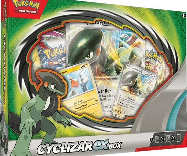 Coast into your next Pokémon TCG match with the support of Cyclizar ex! The helpful Mount Pokémon is ready to roll onto the battlefield with its crafty Power Run attack. With it, you can do damage and search your deck for a Basic Energy to attach to Cyclizar ex. When you’re ready to bring it home, use Full Throttle and slide into big damage! You’ll also find a helpful foil card featuring Rotom and 4 booster packs to add to your collection.