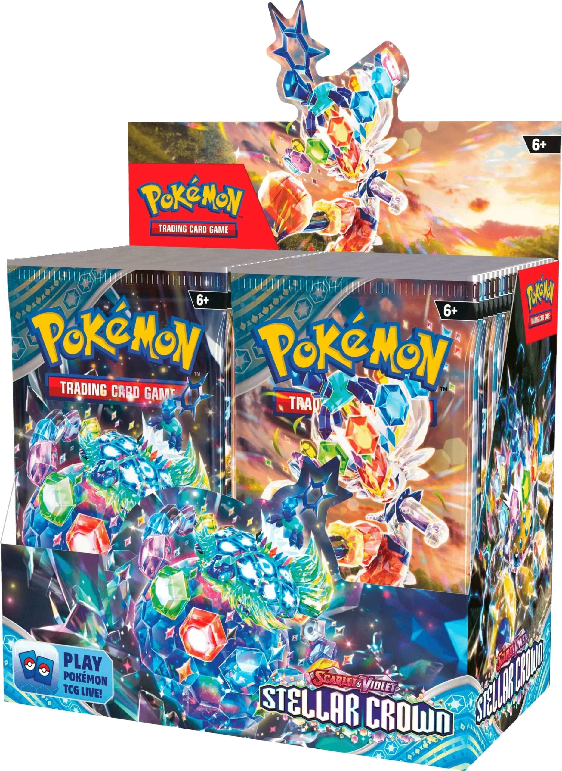 Includes 36 booster packs from the Pokémon TCG: Scarlet & Violet Stellar Crown expansion
