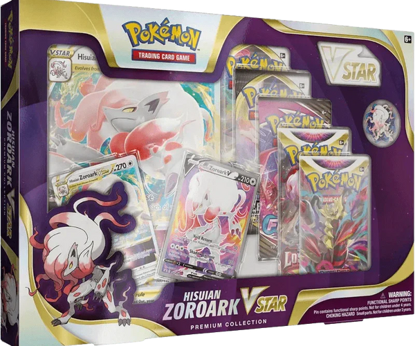 The Pokémon TCG: Hisuian Zoroark VSTAR Premium Collection Box includes: