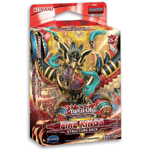 EXTREME HEAT AHEAD! Melt through the snow and ice this December with a revamped Fire Kings Structure Deck! Intensify your Deck’s firepower with brand-new Monster, Spell, and Trap Cards that unleash the true destructive power of Fire King High Avatar Garunix! Here is just some of what you can expect:A new version of Fire King High Avatar Garunix takes the field! It can rise from the ashes (or fly down from your hand) any time one of your FIRE monsters are destroyed, then pump up its own ATK by consuming another monster from your hand, Deck, or field. Use this to activate your other “Fire King” monster effects or come up with your own combo strategies with other FIRE monsters!A new Continuous Spell Card that can place Fire King Island right from your Deck into your Field Zone! It also protects your Field Spell from being destroyed and allows you to Xyz Summon during your opponent’s turn if they Special Summon a monster. There’s even a new Trap Card to set up the Xyz Summon’s materials, by Summoning 3 FIRE monsters – 1 each from your hand, Deck, and Graveyard.A new Rank 8 Xyz Monster that shines brightest in a “Fire King” Deck, but can be Summoned using any 2 Level 8 monsters as materials, so you can include this card in a ton of other strategies too! If it’s Xyz Summoned, you can instantly reduce all other monsters on the field to cinders! After the monsters are taken care of, you destroy a Spell or Trap Card as well, while increasing your monster’s ATK!You’ll also find another chance to grab popular cards that can help take your existing Deck to the next level!Features:• Intensify your Deck’s firepower with brand-new Monster, Spell, and Trap Cards that unleash the true destructive power of Fire King High Avatar Garunix!• This Structure Deck comes with a total of 48 cards: 5 Ultra Rares, 3 Super Rares, and 40 Commons.• Melt through the snow and ice this December with a revamped Fire Kings Structure Deck!Contents:• 1 x Structure Deck